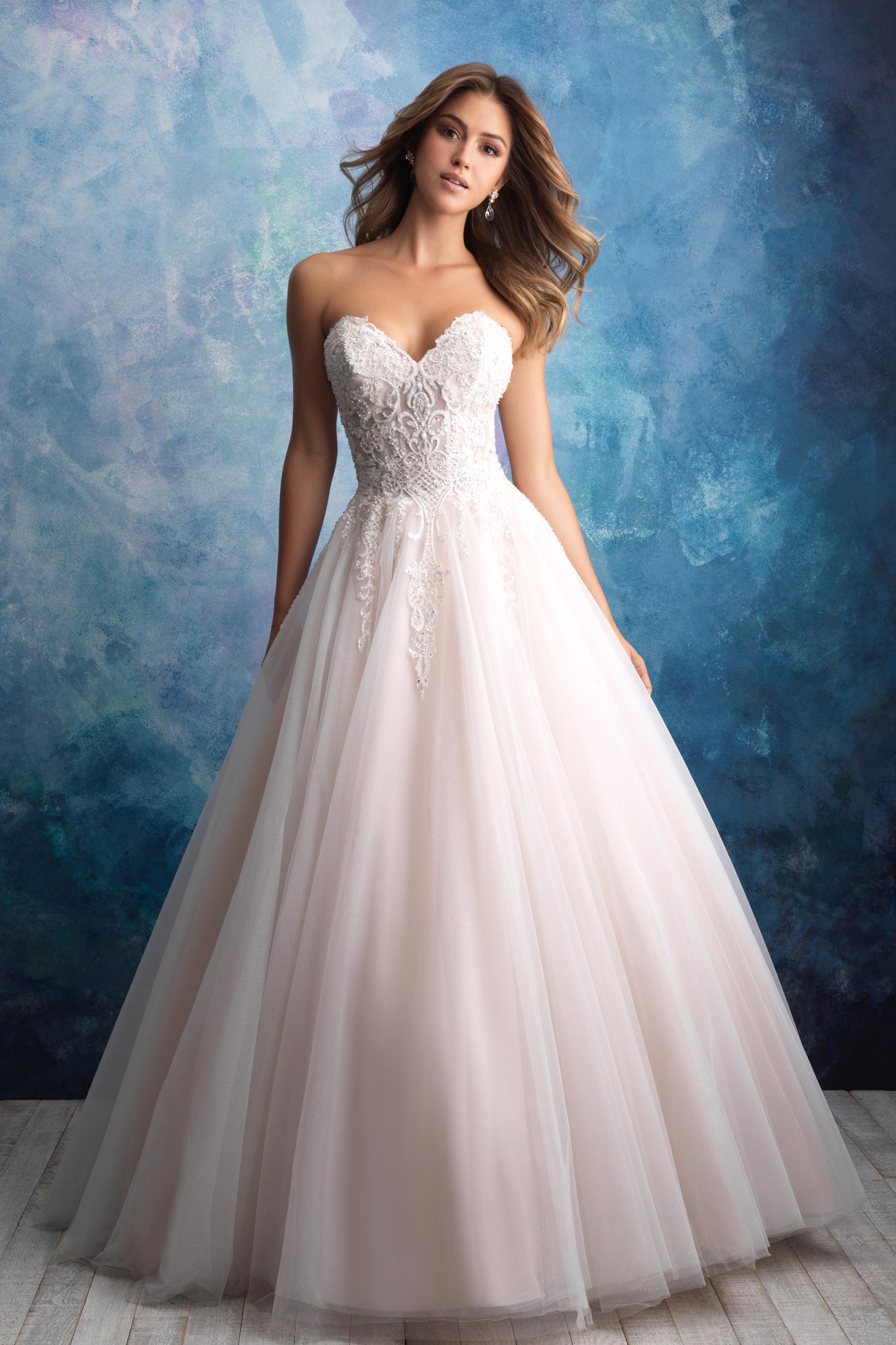Soft tulle trails behind this strapless Ballgown, topped with embroidery and beading along the bodice.
