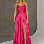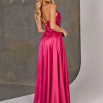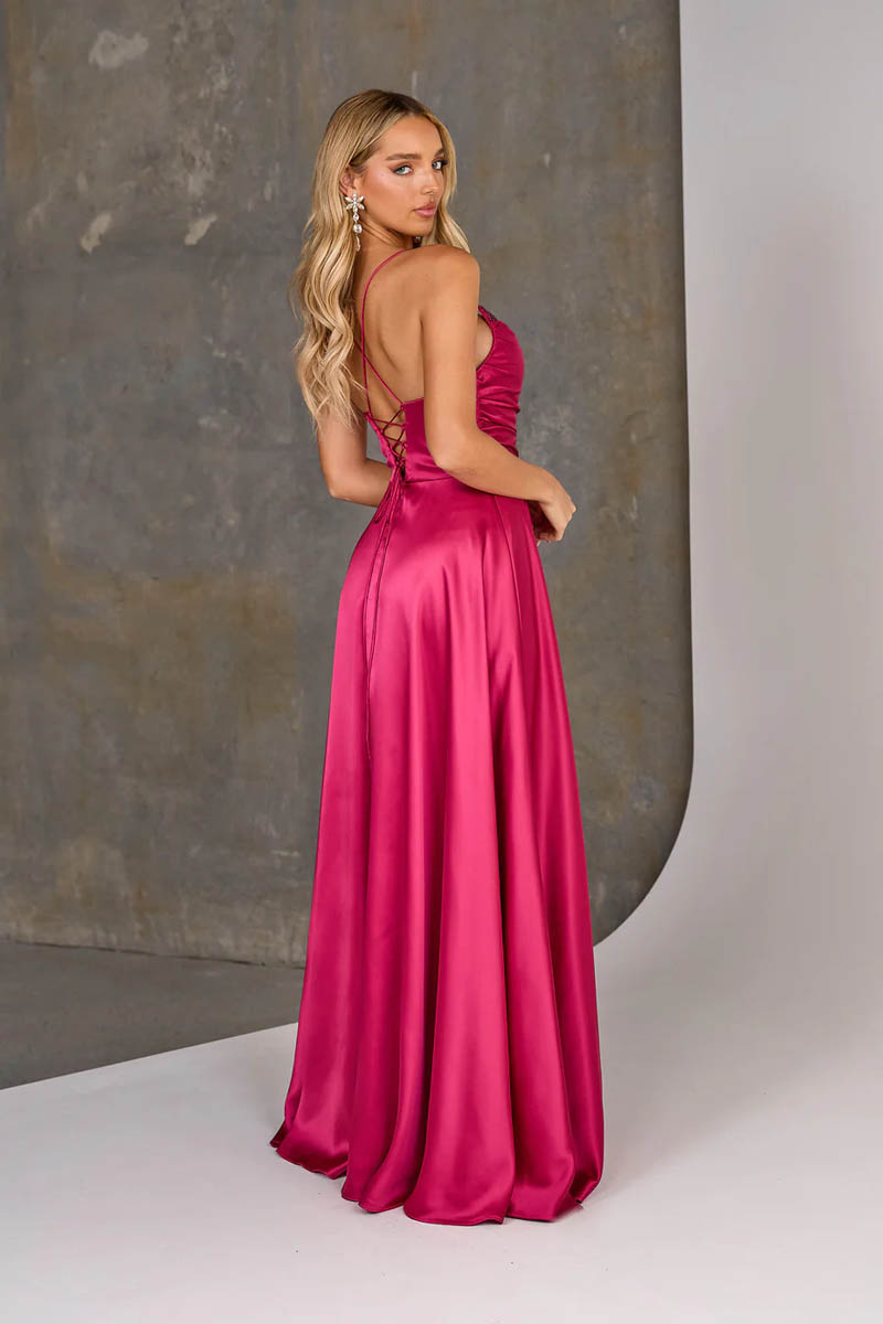 Introducing the Mindy dress, a stunning expression of elegance and glamour. This captivating piece features a sweetheart peaked neckline encrusted with shimmering rhinestones, drawing the eye to its exquisite detailing.