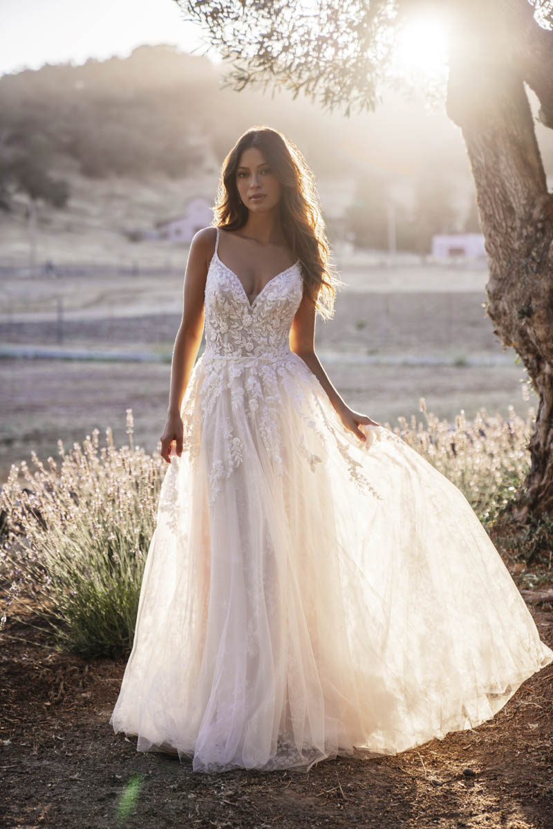 Sweet simplicity takes the form of floral glitter tulle, soft chiffon and sequined appliqués for a dash of sparkle.