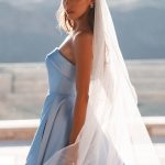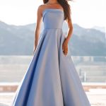 Misty and ethereal in the soft, gray-green hue of Sea Glass, this strapless Mikado ballgown is effortlessly stunning.