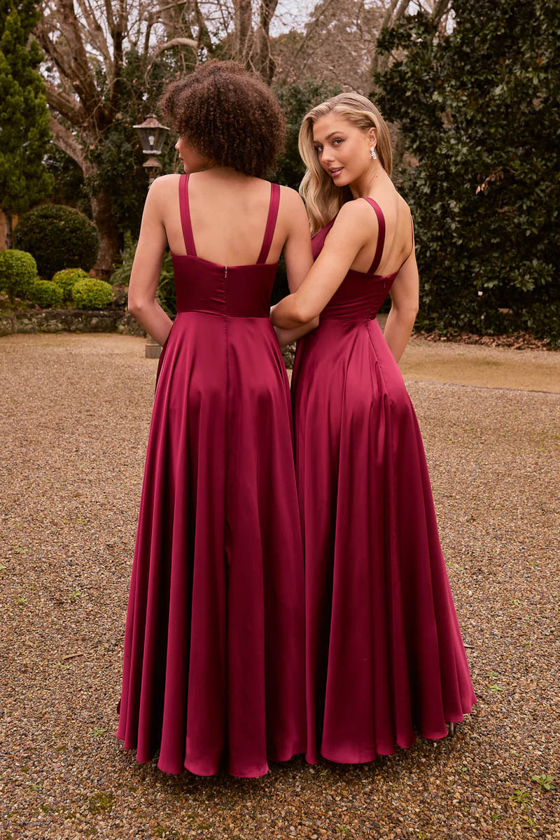 The Denver bridesmaid dress is a simple yet elegant design, that will take your breath away. The Denver features a slinky cowl neckline, spaghetti straps, and a gorgeous square shaped back. From the waistline falls a floor length skirt with a leg split that starts in the middle of the thigh and falls to a fit and flare silhouette. This design is constructed from a lightweight satin that sits beautifully on the body, and is a great choice for spring and summer affairs. This bridesmaid dress is available in 11 colours in sizes AU 4-30.